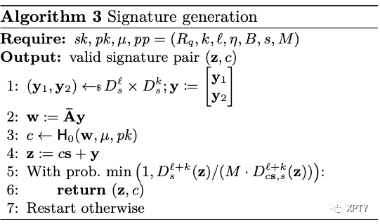 We present a non-optimized version of Dilithium-G signature scheme in Algorithms 1 to 3 . The random oracle is defined as . Due to [Lyu12, Lemma 4.4] we restate below, the maximum -norm of the signature is set to , where the parameter is chosen such that the probability is negligible.