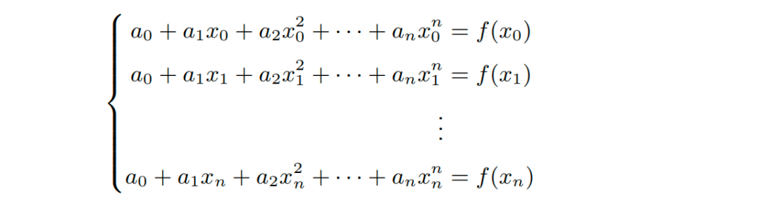 因此,在已知后可通过求解线性方程组来快速确定多项式系数。其中的矩阵为范德蒙矩阵,设为。