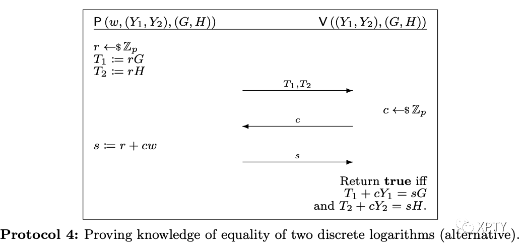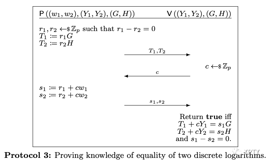 Let be a group over an elliptic curve with prime order . Proving equality of the known discrete logarithm of in base and in base means proving knowledge of such that and , and