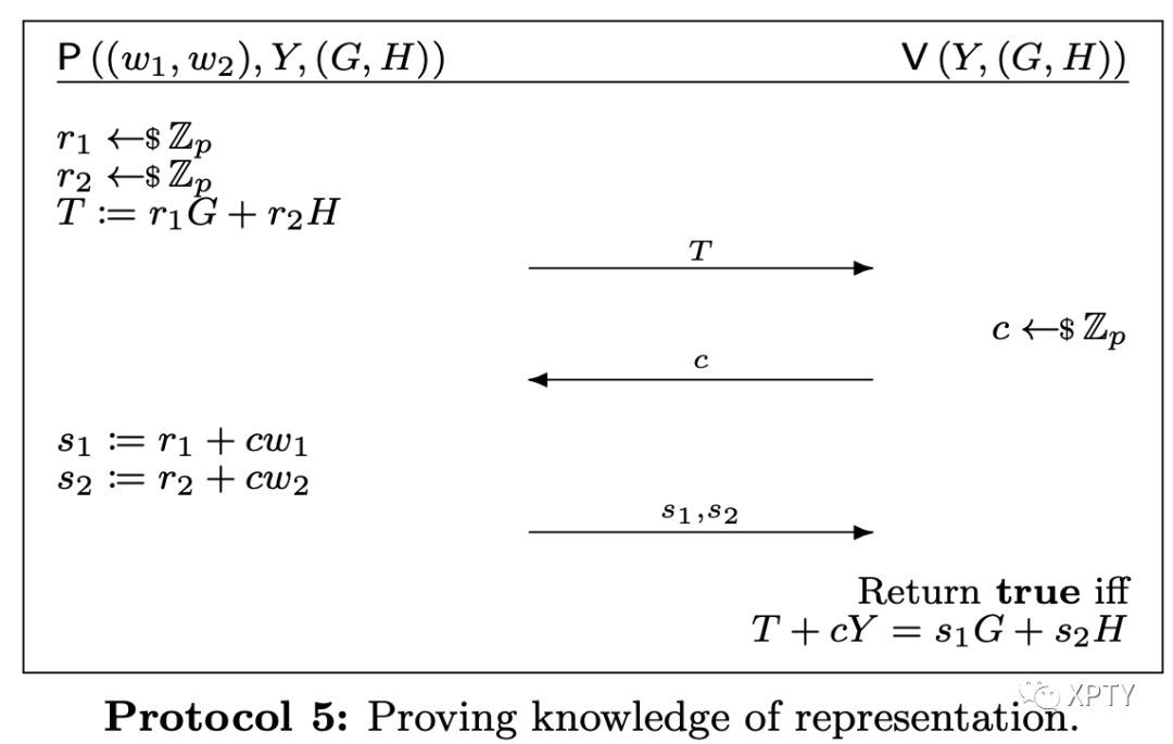 Let be a group over an elliptic curve of prime order . Proving knowledge of a valid opening of a Pedersen commitment means proving knowledge of such that .