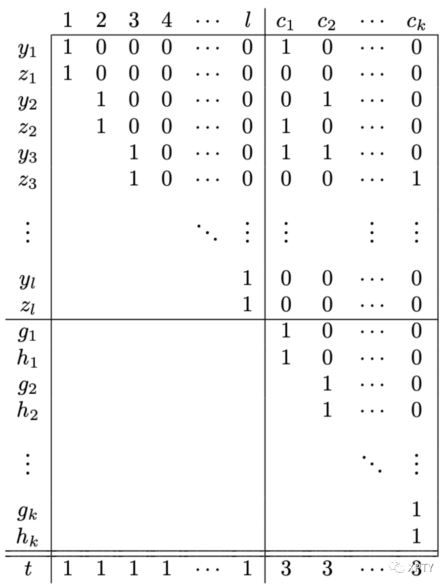Additionally, contains one pair of numbers, for each clause These two numbers are equal and consist of a 1 followed by 0s.