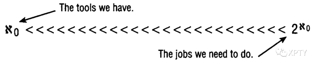 Regardless, the profound implication of all this is that the cardinality of enumerable sets is not only smaller than the cardinality of the continuum