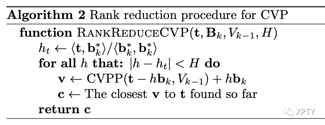 A procedure that given a basis for a -rank lattice and an integer such that solves a CVP instance on with calls to CVP on the -rank sub-lattice