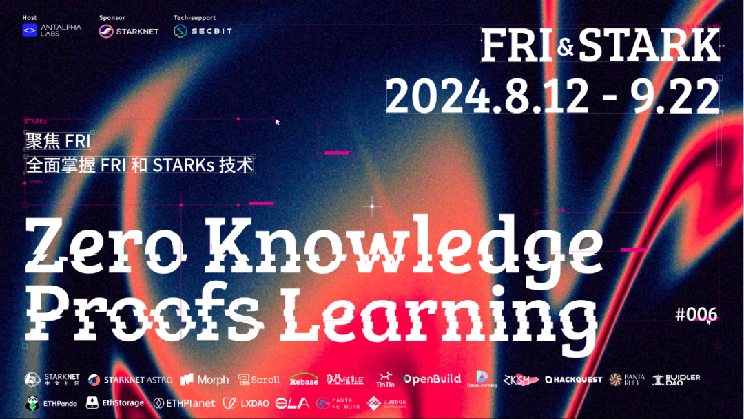 本次课程由 Starknet Foundation 赞助和支持,我们将用两个月的时间,6 周线上,2 周线下(待定),与你一起深入 FRI。