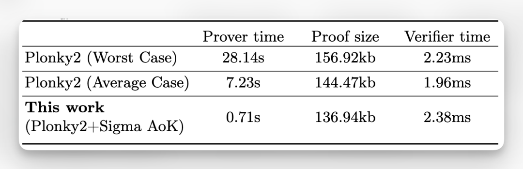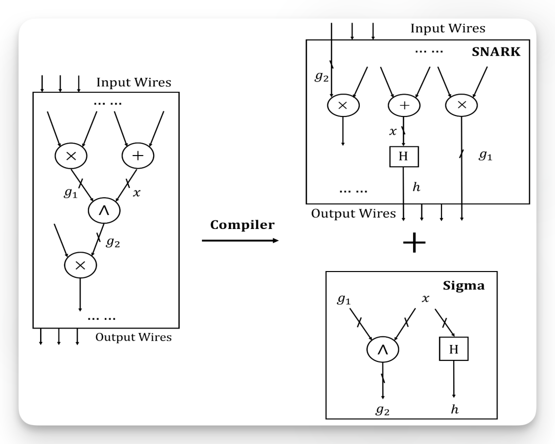 通过在 SNARK 之外使用专门设计的 Sigma 协议(称为 Sigma Argument of Knowledge)来证明指数门的正确性,仅需在电路内验证常数次的群运算与若干 zk-friendly 哈希函数(如 Poseidon)应用,相比将完整指数运算映射为数百乃至上千次原生约束,证明者速度提升近一个数量级 。
