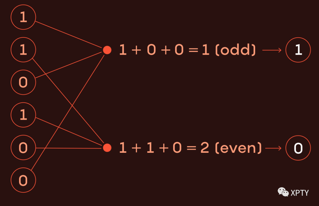 汉明的工作为 1980 年代无处不在的纠错码奠定了基础。他提出了一条规则,即每条消息都应该匹配一组“收据”,这些收据记录了相应比特的“账目”。更具体地说,每条收据都是从消息中精心选择的比特子集的求和。当这个求和值为偶数时,收据被标记为 0,当它有奇数值时,收据被标记为 1。每条收据由一个比特表示,换句话说,研究人员称之为奇偶校验或奇偶校验位.