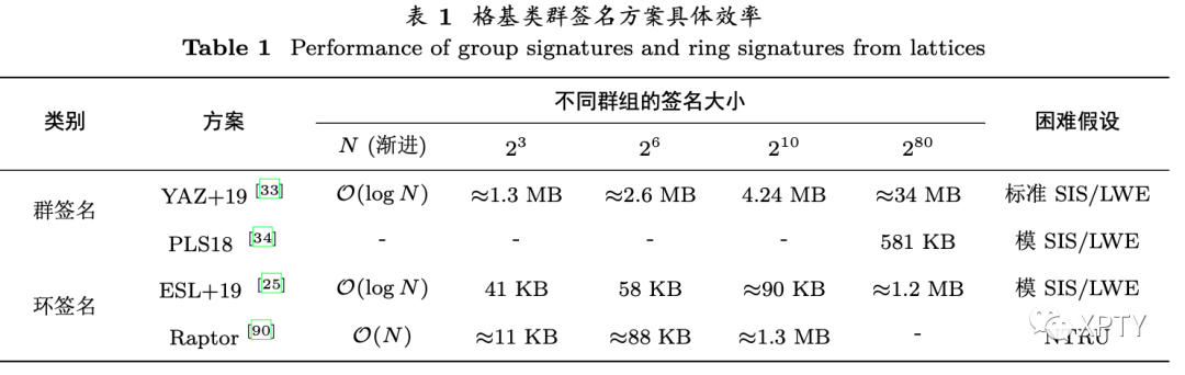 结合安全假设、具体功能和应用场景等指标, 在表1中总结了其中最高效的格基类群签名方案.