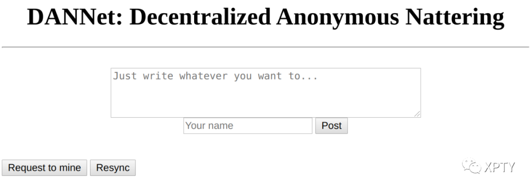 Your application should have the feature to post content, to request a node to mine, and to resync with the chain.