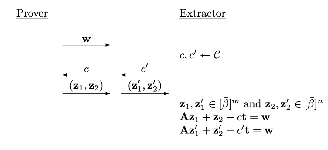 通过回绕,提取器可以获得满足验证方程的两个脚本和,因此。根据定义,我们有